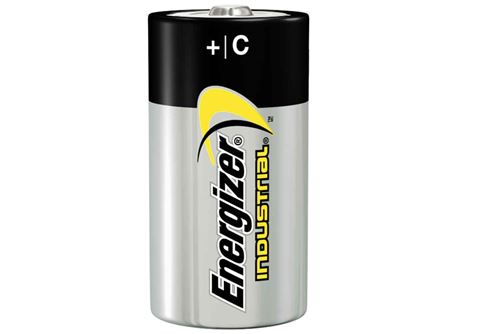 Energizer C cell alkaline industrial battery. Energizer alkaline industrial batteries are available in a wide variety of sizes to fit most applications and operate well in extreme temperatures. The Industrial Alkaline series contains the same long-lasting power found in Energizer Max batteries, and they can be stored for up to 7 years before use.