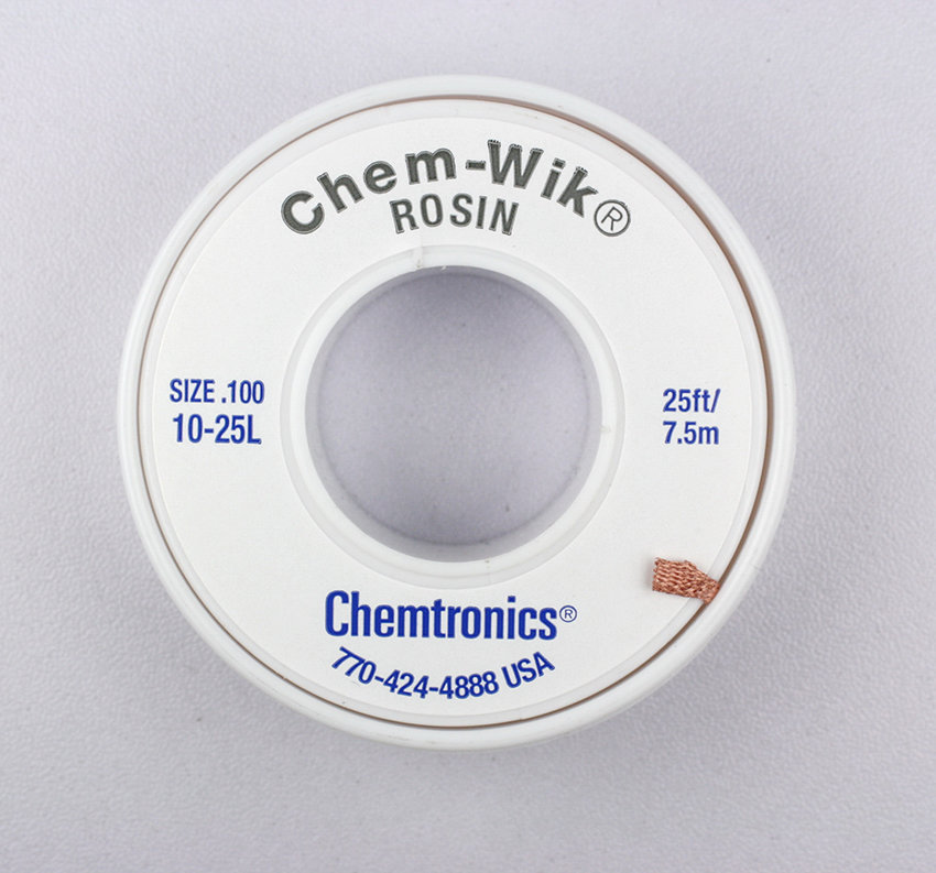 Chem-Wik Rosin 10-25L desoldering braid ensures fast and safe desoldering. A non-activated, white rosin flux (in conformance with MIL-F-14256F, Type R) is laminated onto the entire braid to protect against oxidation and promote solderability. Ultra-pure, oxygen-free, copper braid quickly and completely removes solder from circuit boards and components. Its fast wicking action protects components from harmful heat damage.