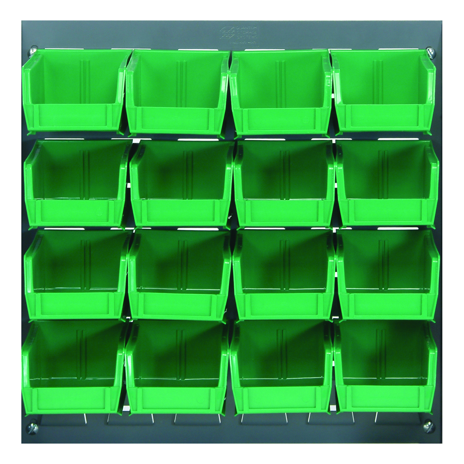 Louvered Panel, wall mounted, 18″L x 6″D x 19″H, includes: (16) QUS210, clear bins, heavy-duty 16 gauge cold rolled steel, gray enamel coated finish (mounting hardware not included)
