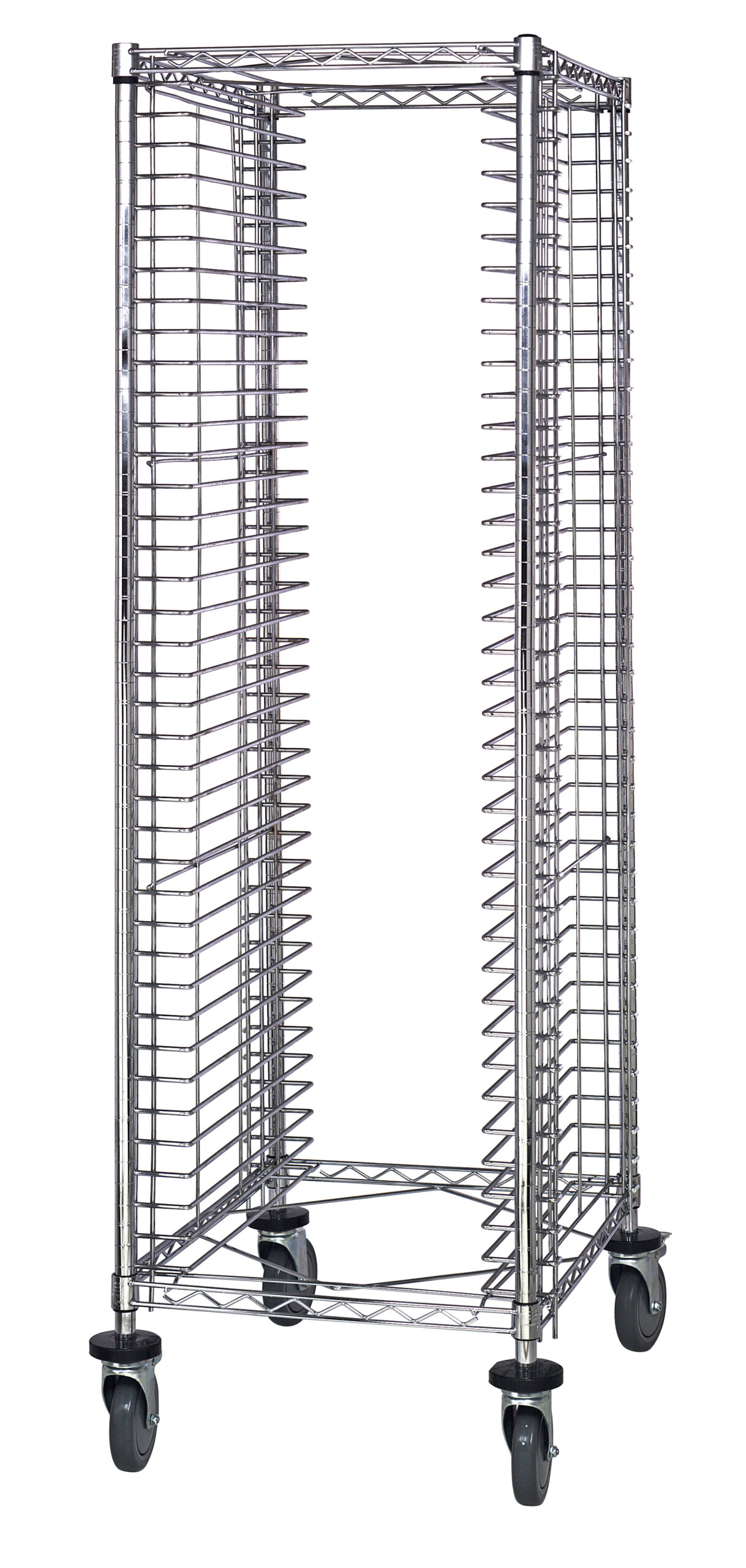 Tray Cart, mobile, conductive, full size, 27″W x 21-3/4″D x 69″H, end loading, holds (38) trays, casters, chrome plated finish