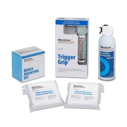 MicroCare Circuit Board Cleaning Station is the best way to use today’s new, ozone safe cleaning solvents, and this cleaning station kit is the best way to get started with the TriggerGrip system. It contains everything you need to get started cleaning faster, better, safer, and cheaper. When connected to an aerosol canister of MicroCare solvent, this combined system removes fluxes, oils, tape residues, grease, and even white residues without damage to electronics. The kit includes: one TriggerGrip dispener, one aerosol can of high-purity SUPRCLEAN fluid, one bench mounting kit to hold the can and the TriggerGrip securely on the workbench, and two packages of High-Performance Lint-Free Dry Wipes (100 wipes) for maximum absorbency.